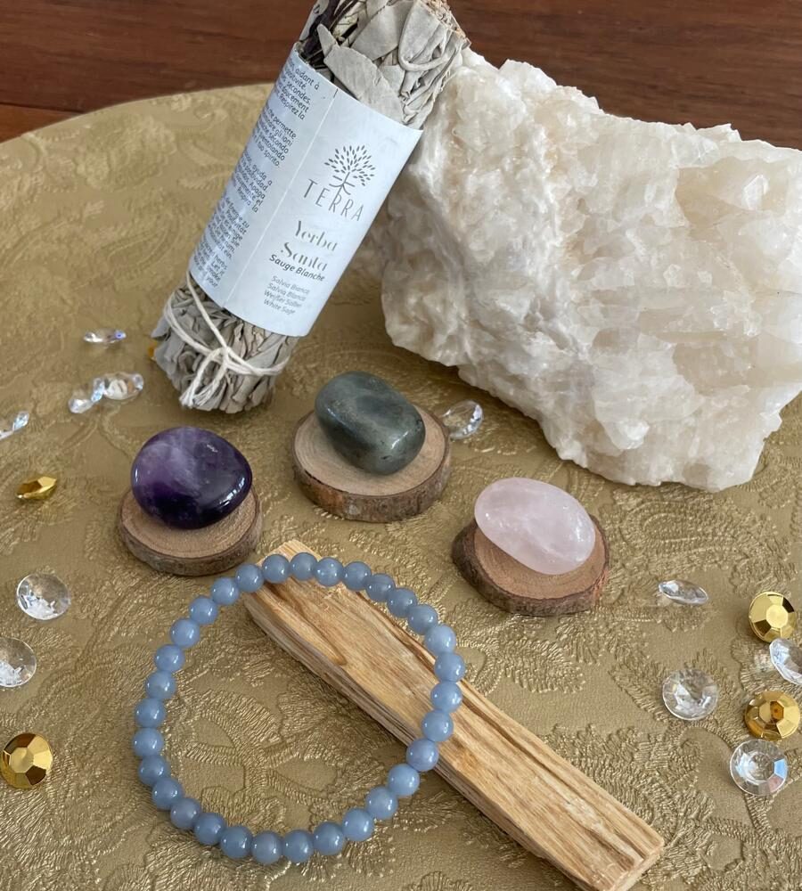 Chaque pierre agit sur un aspect précis, mais c’est leur association qui crée une énergie stable, douce et propice à l’apaisement émotionnel et à la détente profonde.