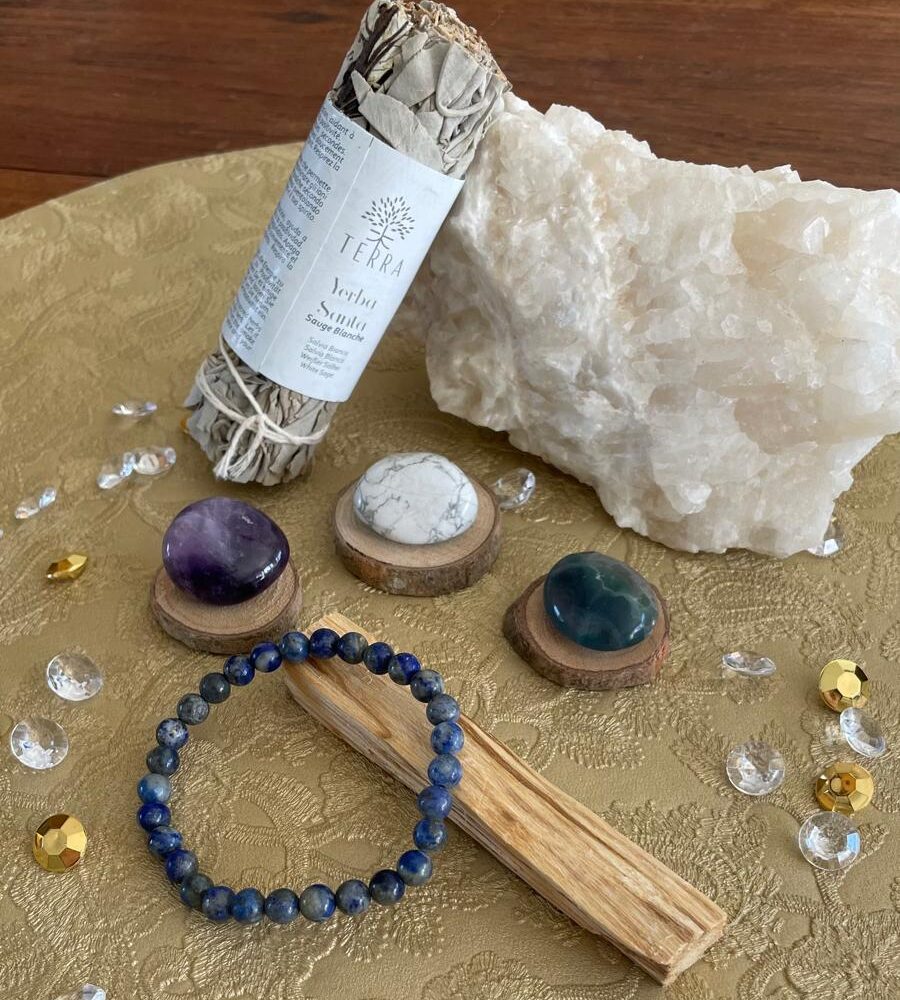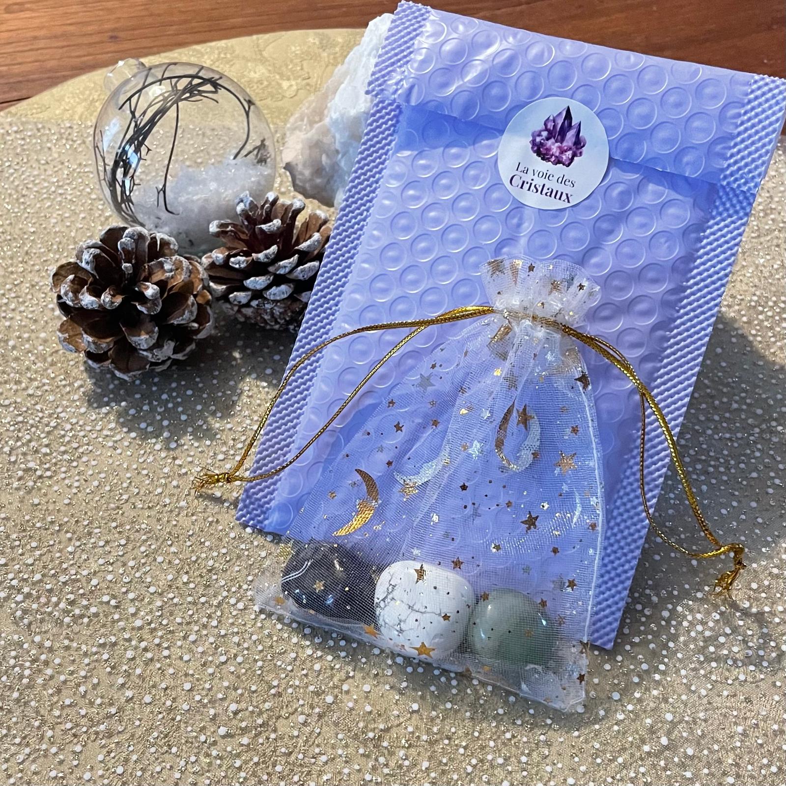 Chaque pierre agit sur un aspect précis, mais c’est leur association qui crée une énergie stable, relaxante et propice à l’apaisement des douleurs et à la clarté d’esprit.